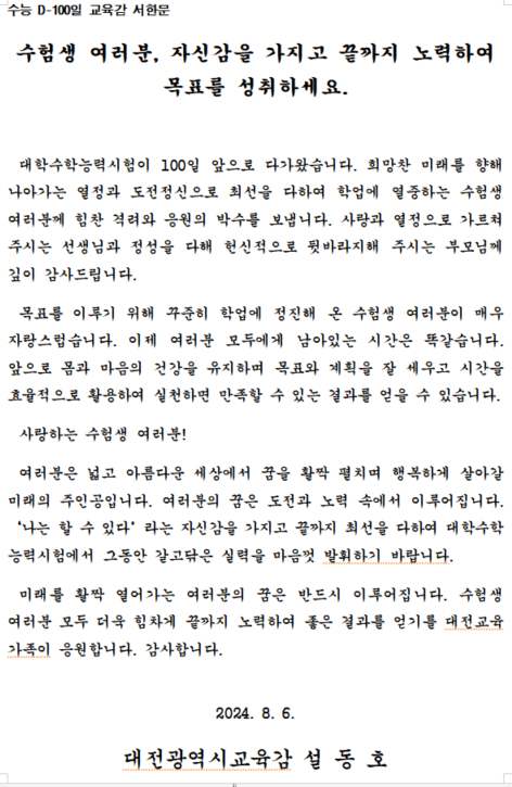 2025Çг⵵ ´ëÇмöÇдɷ½ÃÇè D-100ÀÏ ±³À°°¨ ¼­Çѹ®