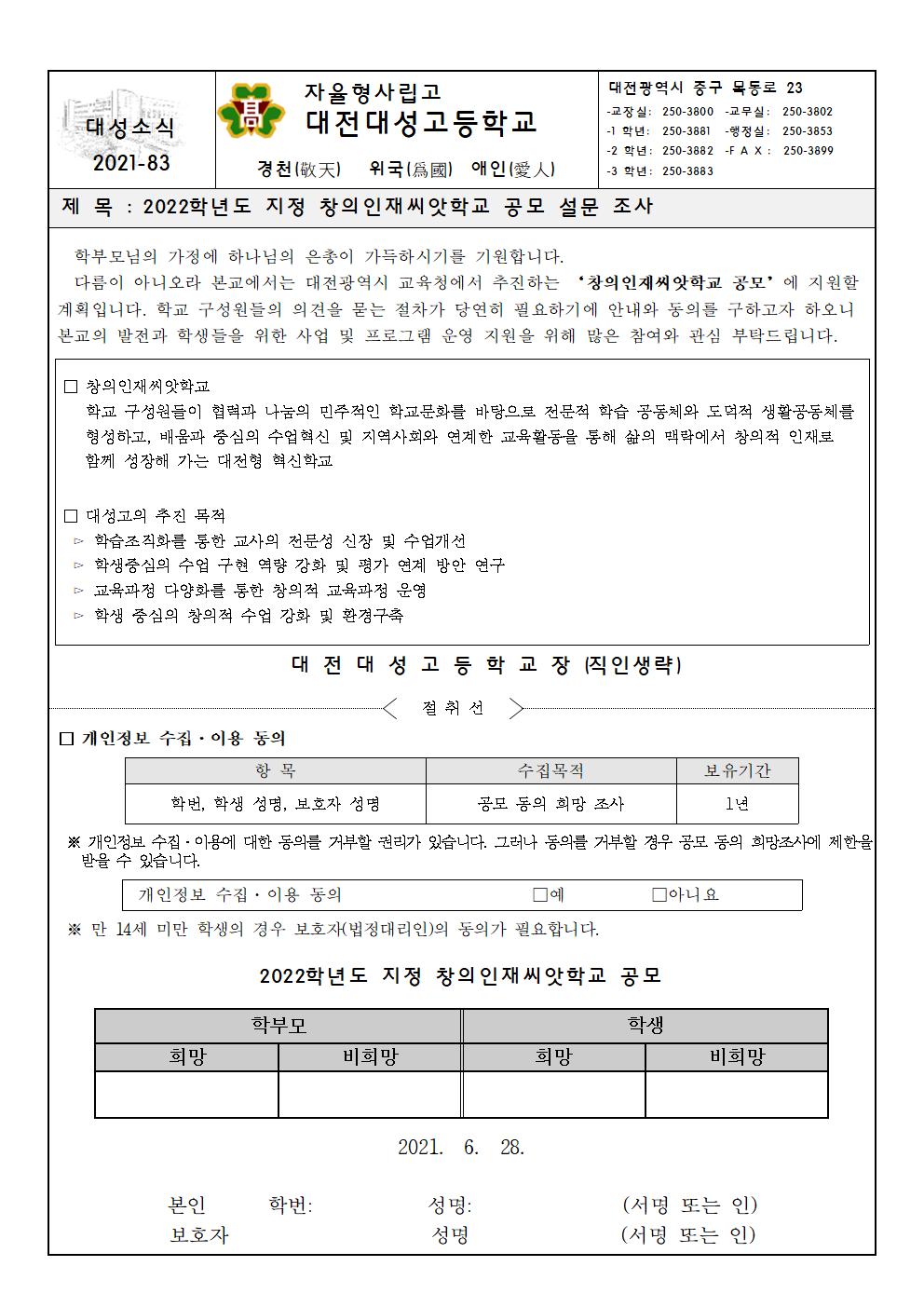 2022Çг⵵ ÁöÁ¤ âÀÇÀÎÀç¾¾¾ÑÇб³ °ø¸ð ¼³¹® Á¶»ç