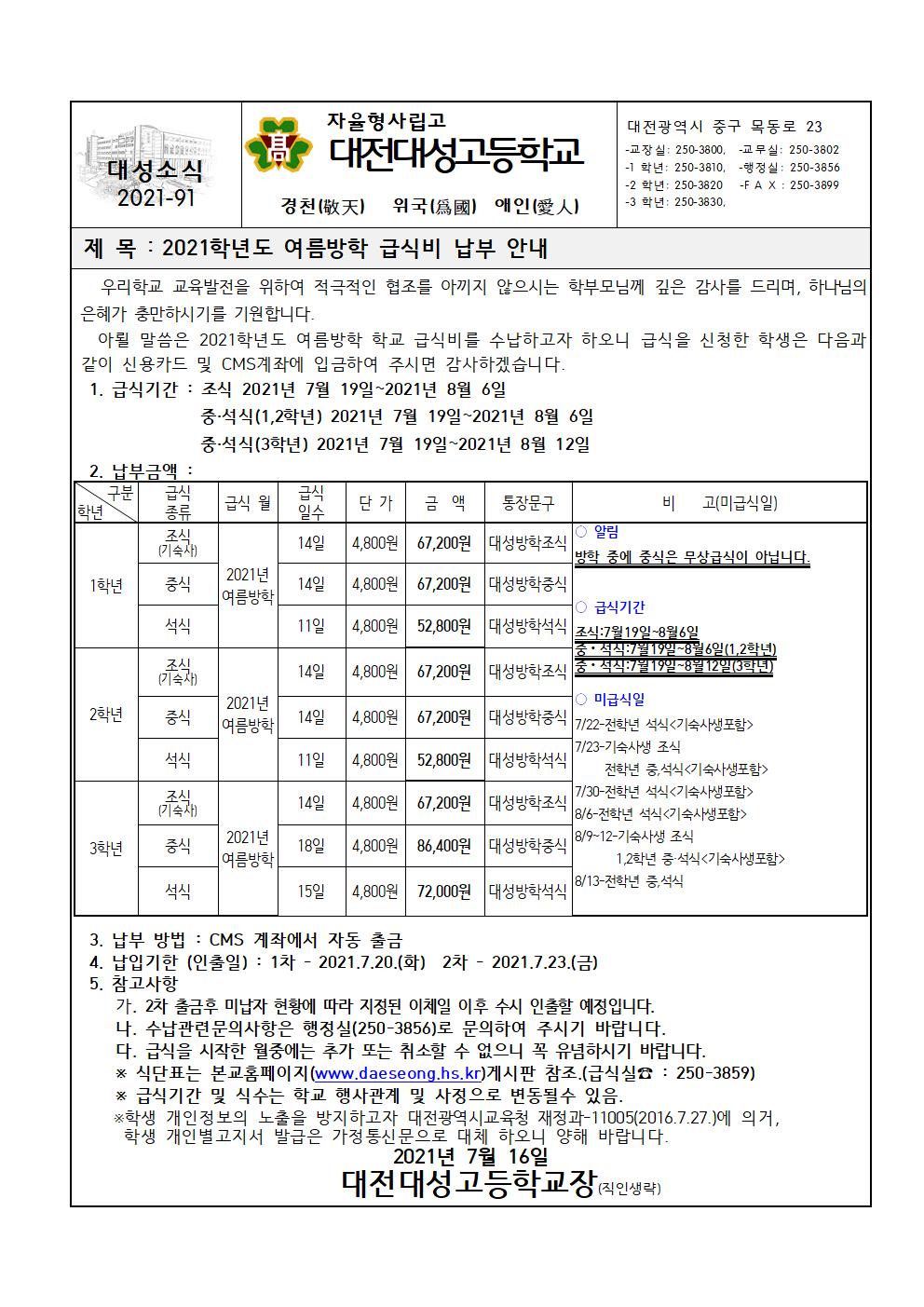 2021Çг⵵ ¿©¸§¹æÇÐ ±Þ½Äºñ ³³ºÎ ¾È³»