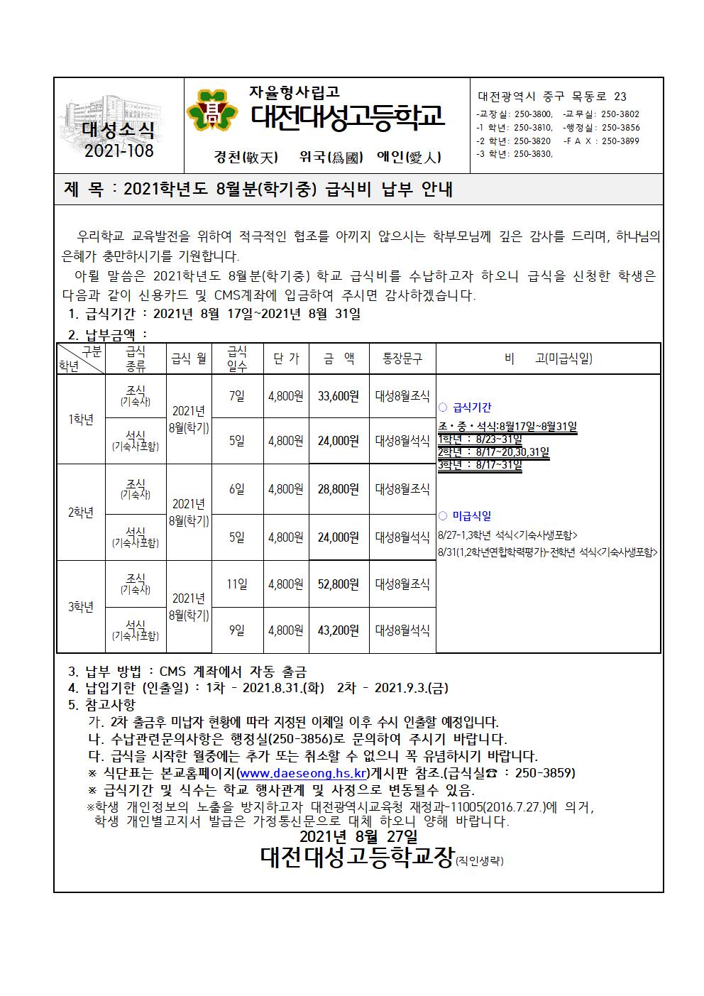 2021Çг⵵ 8¿ùºÐ(ÇбâÁß) ±Þ½Äºñ ³³ºÎ ¾È³»