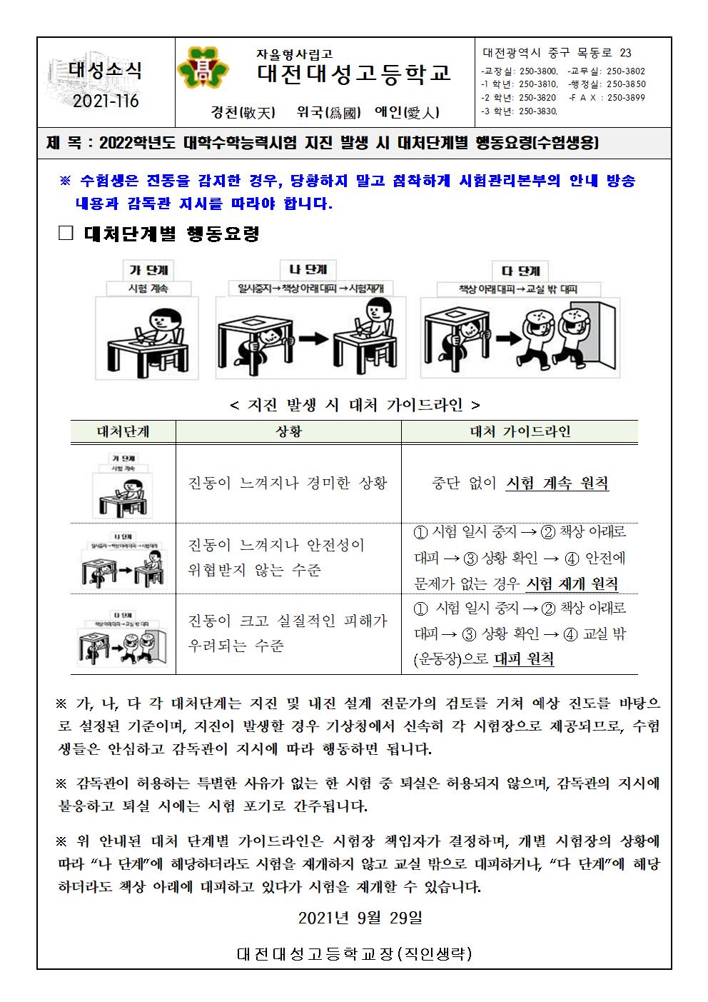 2022Çг⵵ ´ëÇмöÇдɷ½ÃÇè ÁöÁø ¹ß»ý ½Ã ´ëó´Ü°èº° Çൿ¿ä·É °¡Á¤Åë½Å¹®