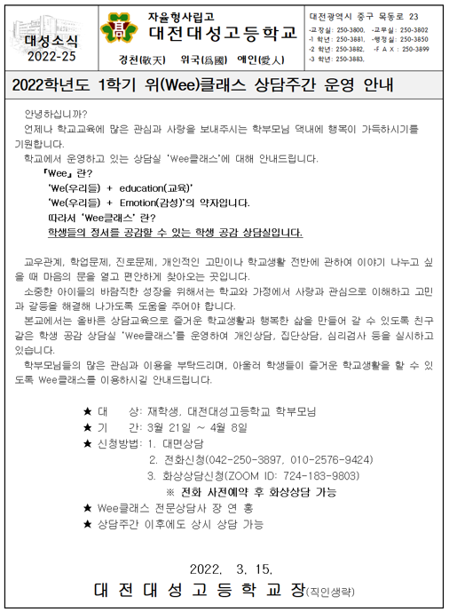 2022Çг⵵ 1Çбâ À§(Wee)Ŭ·¡½º »ó´ãÁÖ°£ ¿î¿µ ¾È³»