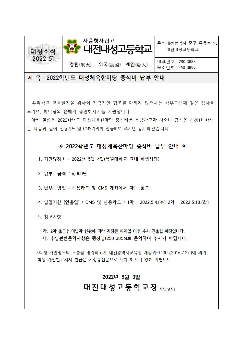 2022Çг⵵ ´ë¼ºÃ¼À°ÇѸ¶´ç Á߽ĺñ ³³ºÎ ¾È³»