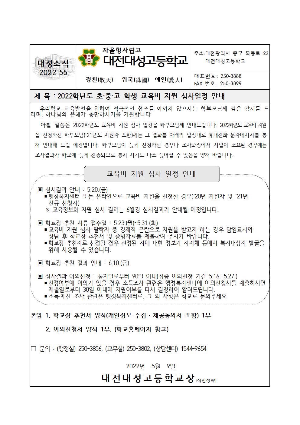 2022Çг⵵ ÃÊ¡¤Áß¡¤°í Çлý ±³À°ºñ Áö¿ø ½É»çÀÏÁ¤ ¾È³»
