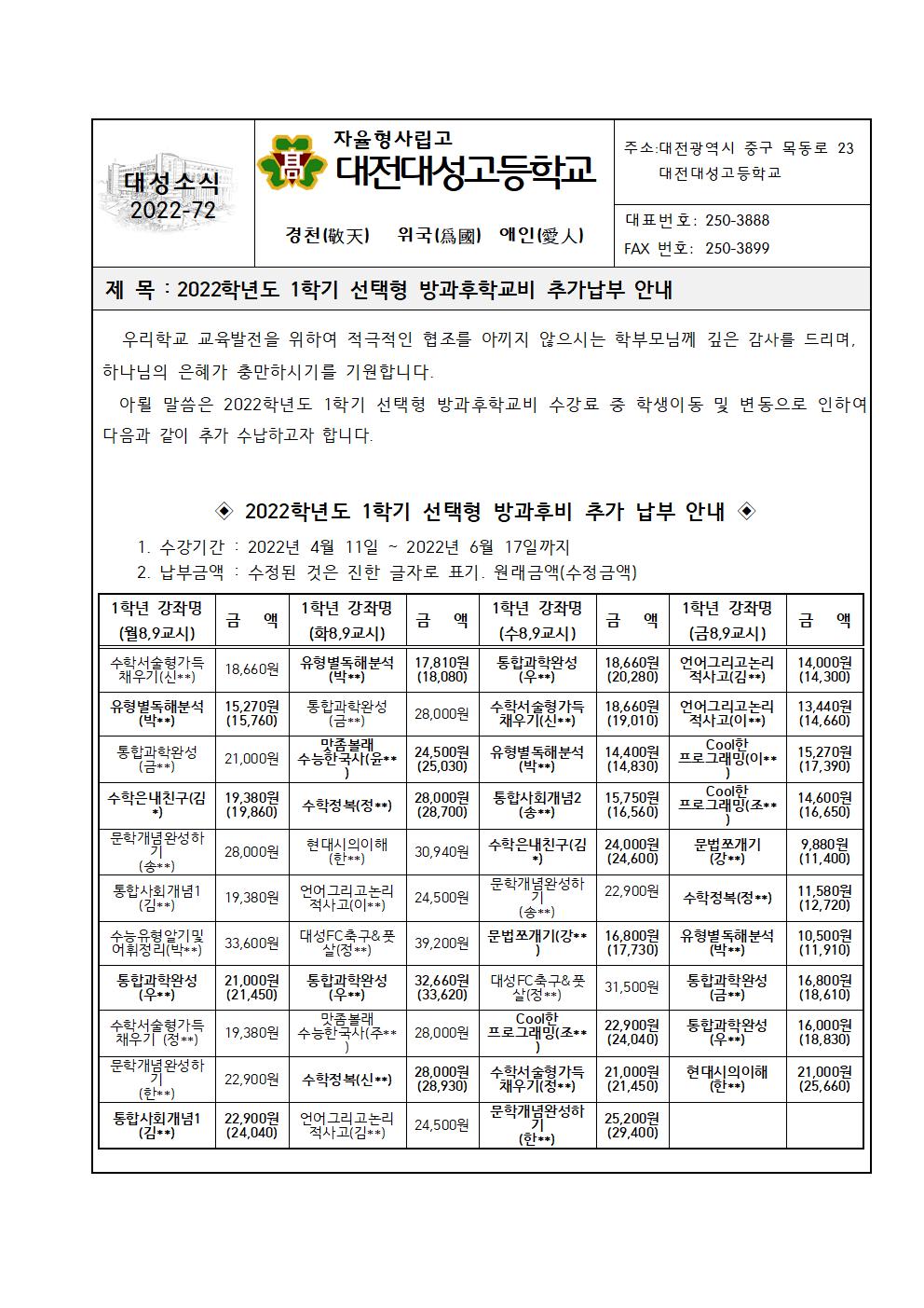 2022Çг⵵ 1Çб⠼±ÅÃÇü ¹æ°úÈÄÇб³ºñ Ãß°¡³³ºÎ ¾È³»