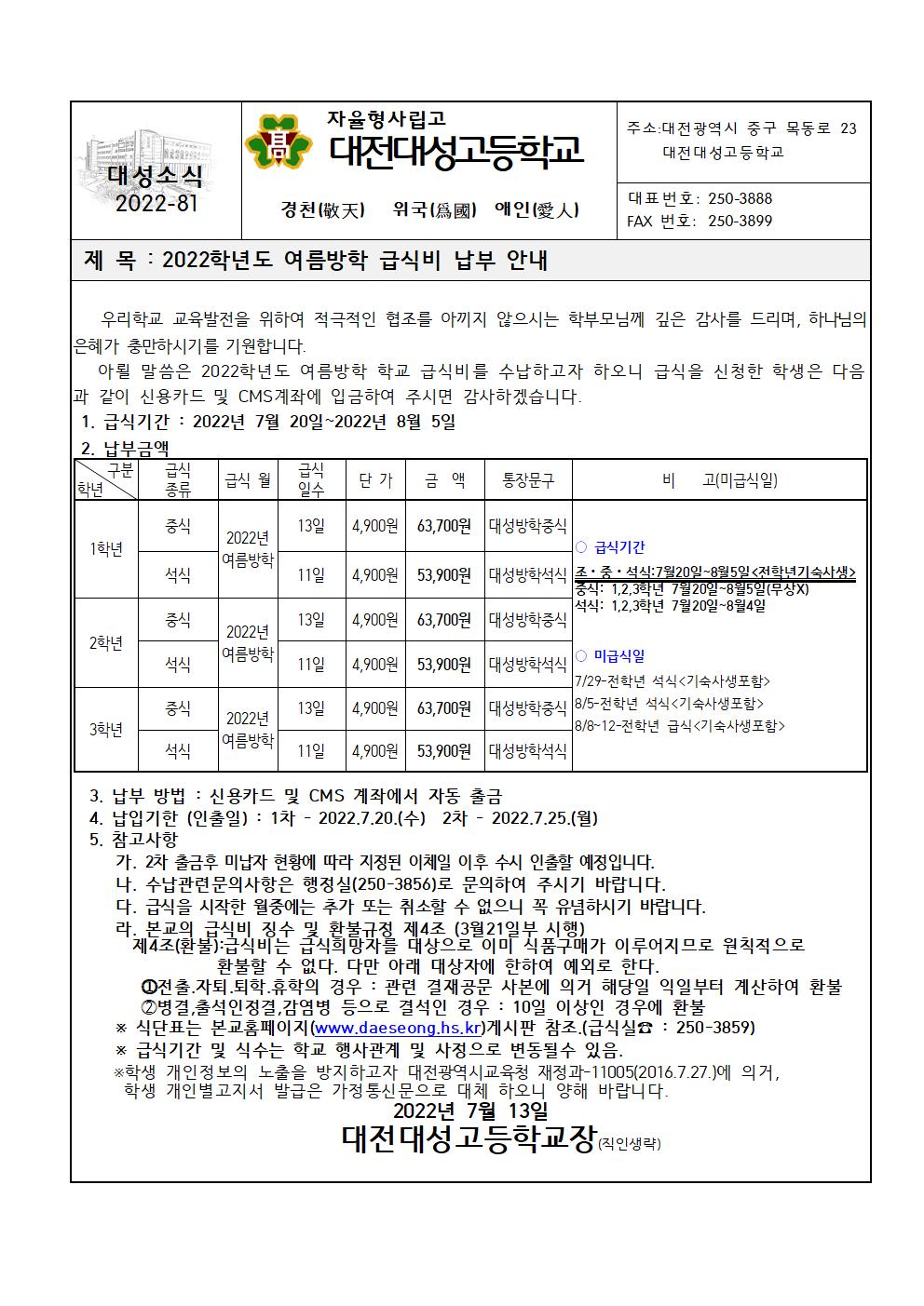 2022Çг⵵ ¿©¸§¹æÇÐ ±Þ½Äºñ ³³ºÎ ¾È³»