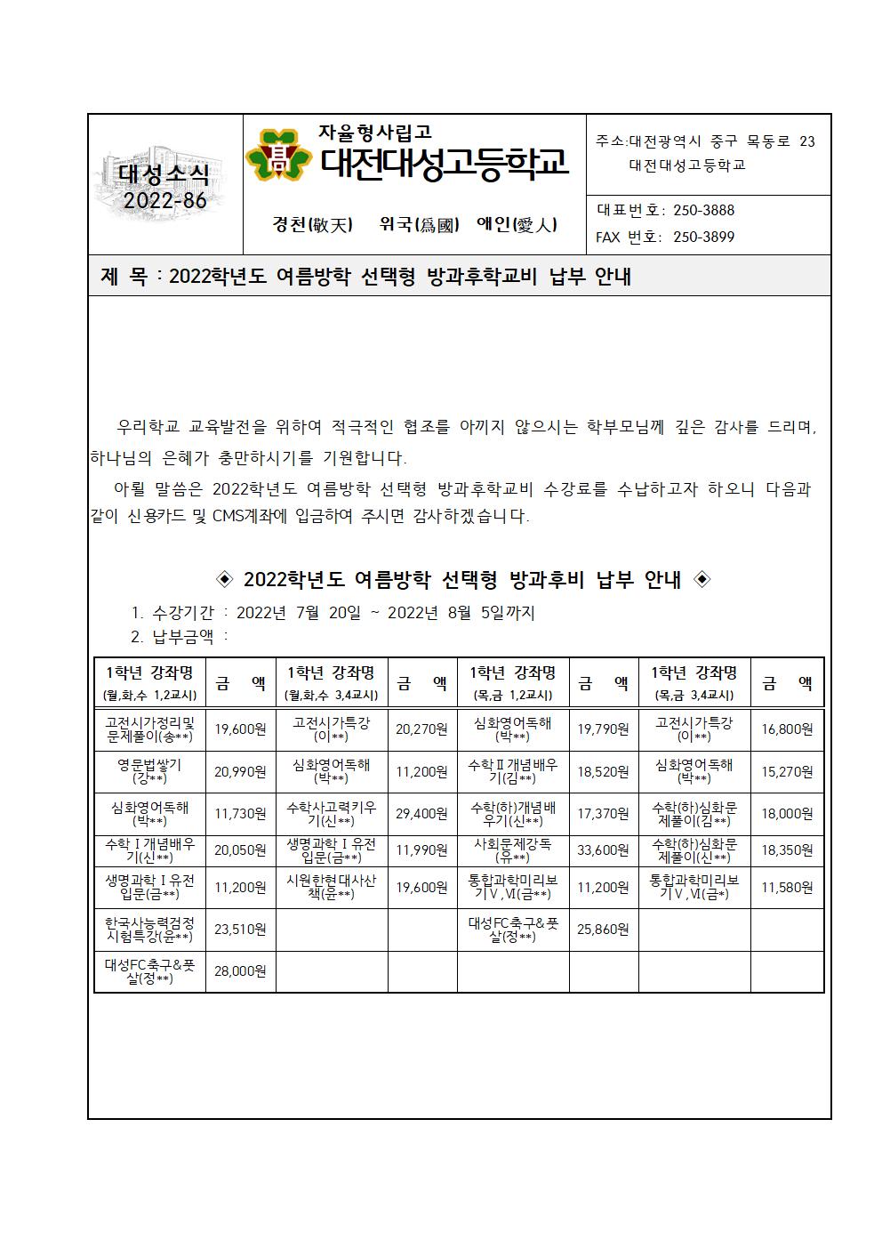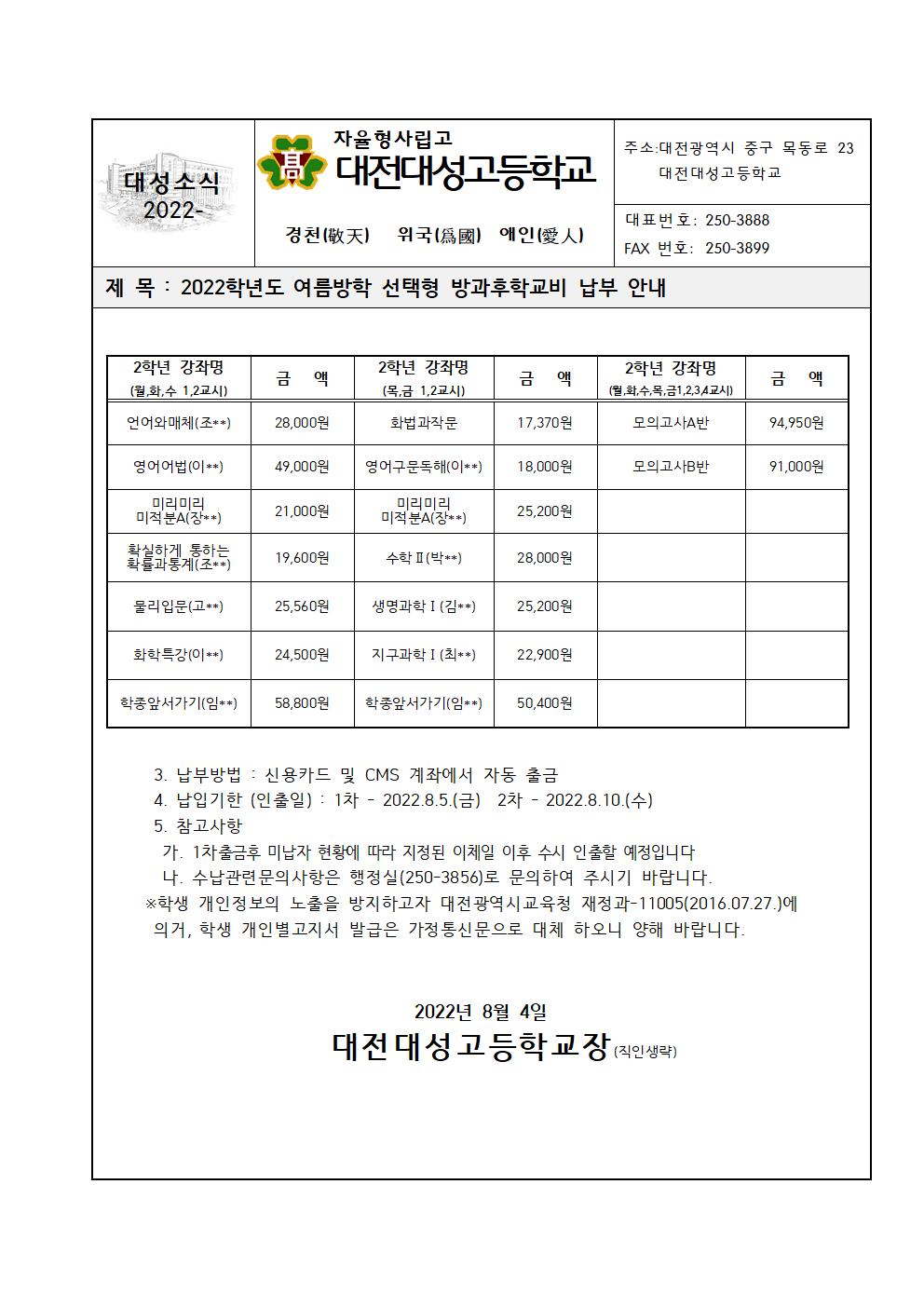 2022Çг⵵ ¿©¸§¹æÇÐ ¼±ÅÃÇü ¹æ°úÈÄÇб³ºñ ³³ºÎ ¾È³»