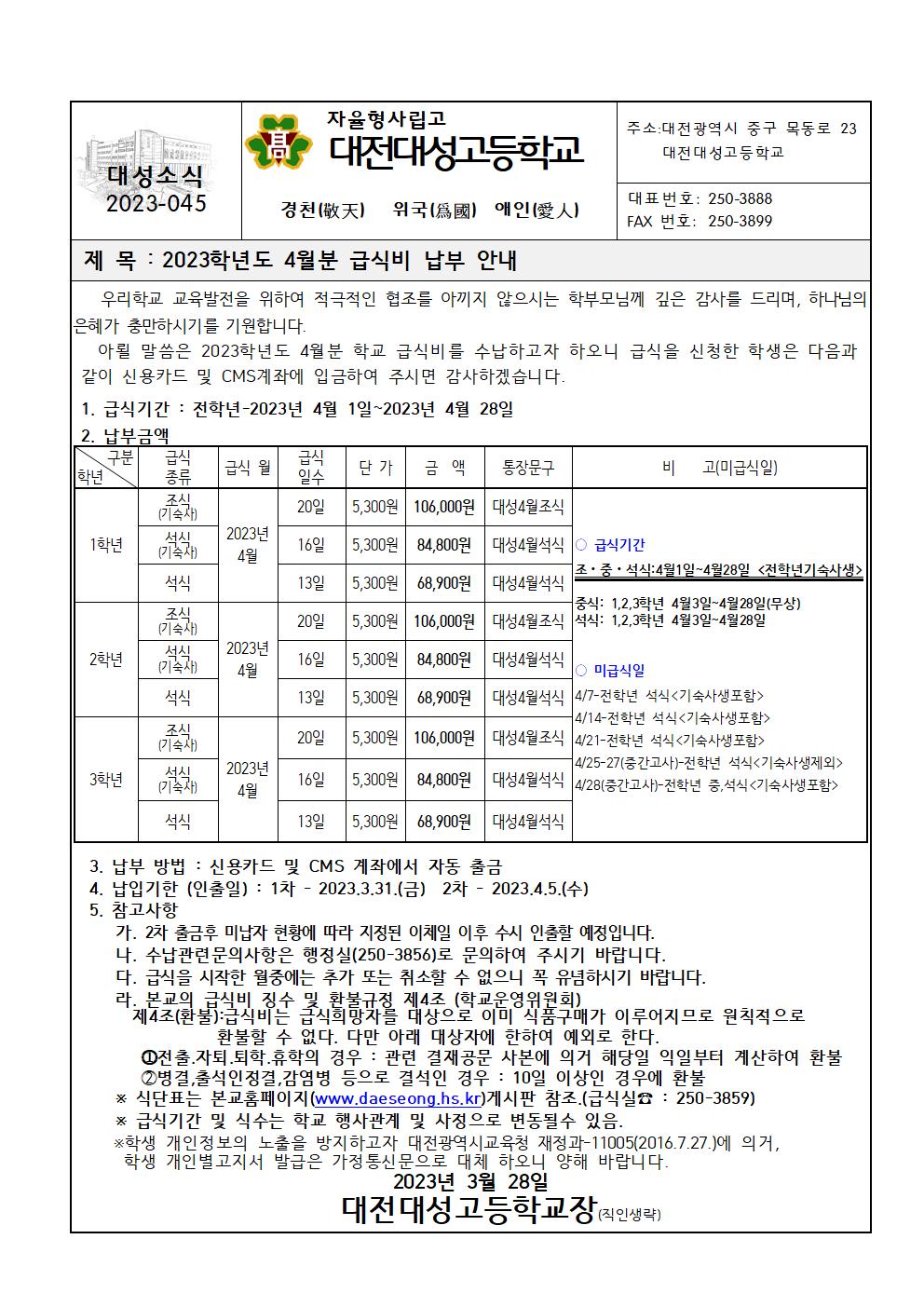2023Çг⵵ 4¿ùºÐ ±Þ½Äºñ ³³ºÎ ¾È³»