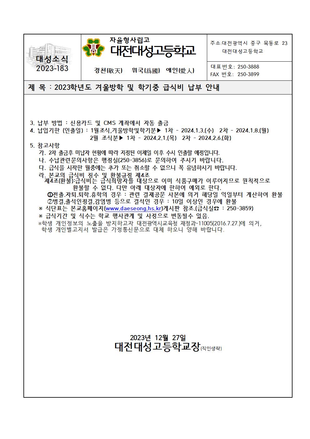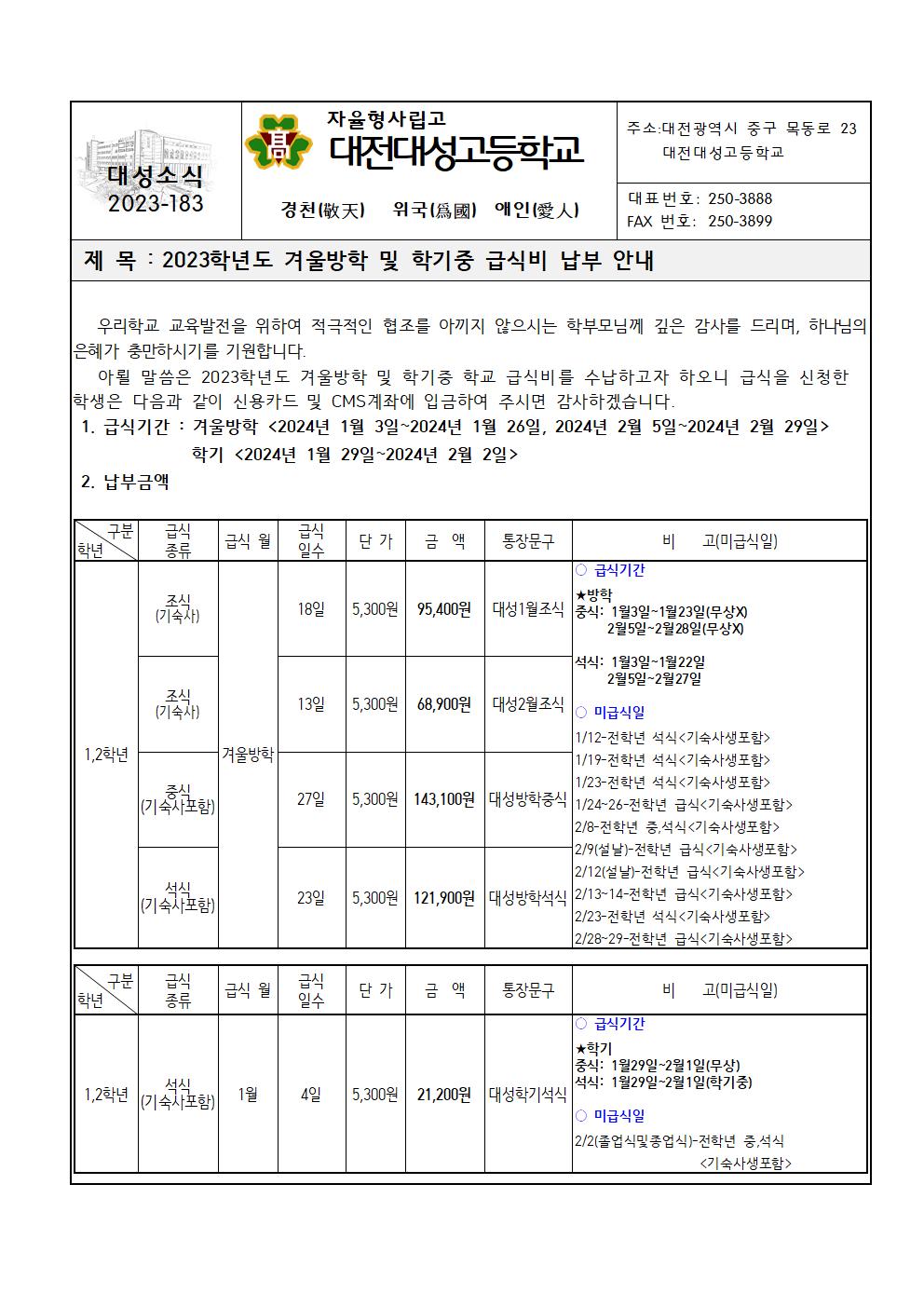 2023Çг⵵ °Ü¿ï¹æÇÐ ¹× ÇбâÁß ±Þ½Äºñ ³³ºÎ ¾È³»
