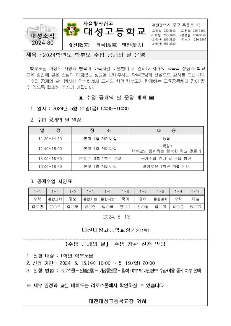 2024Çг⵵ ¼ö¾÷ °ø°³ÀÇ ³¯ ¿î¿µ ¾È³»