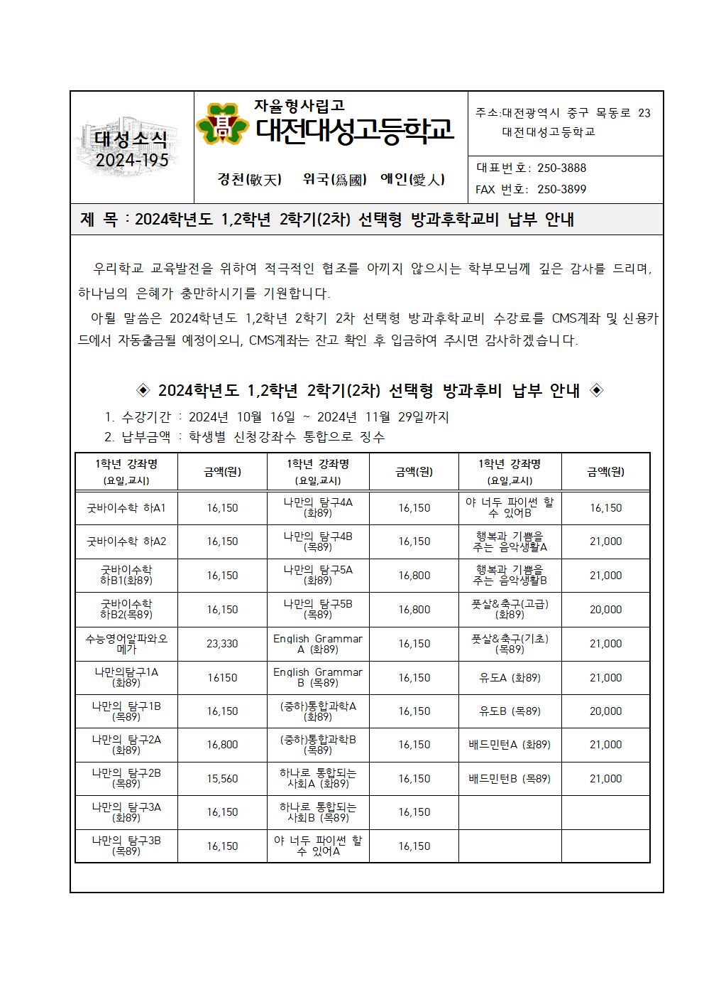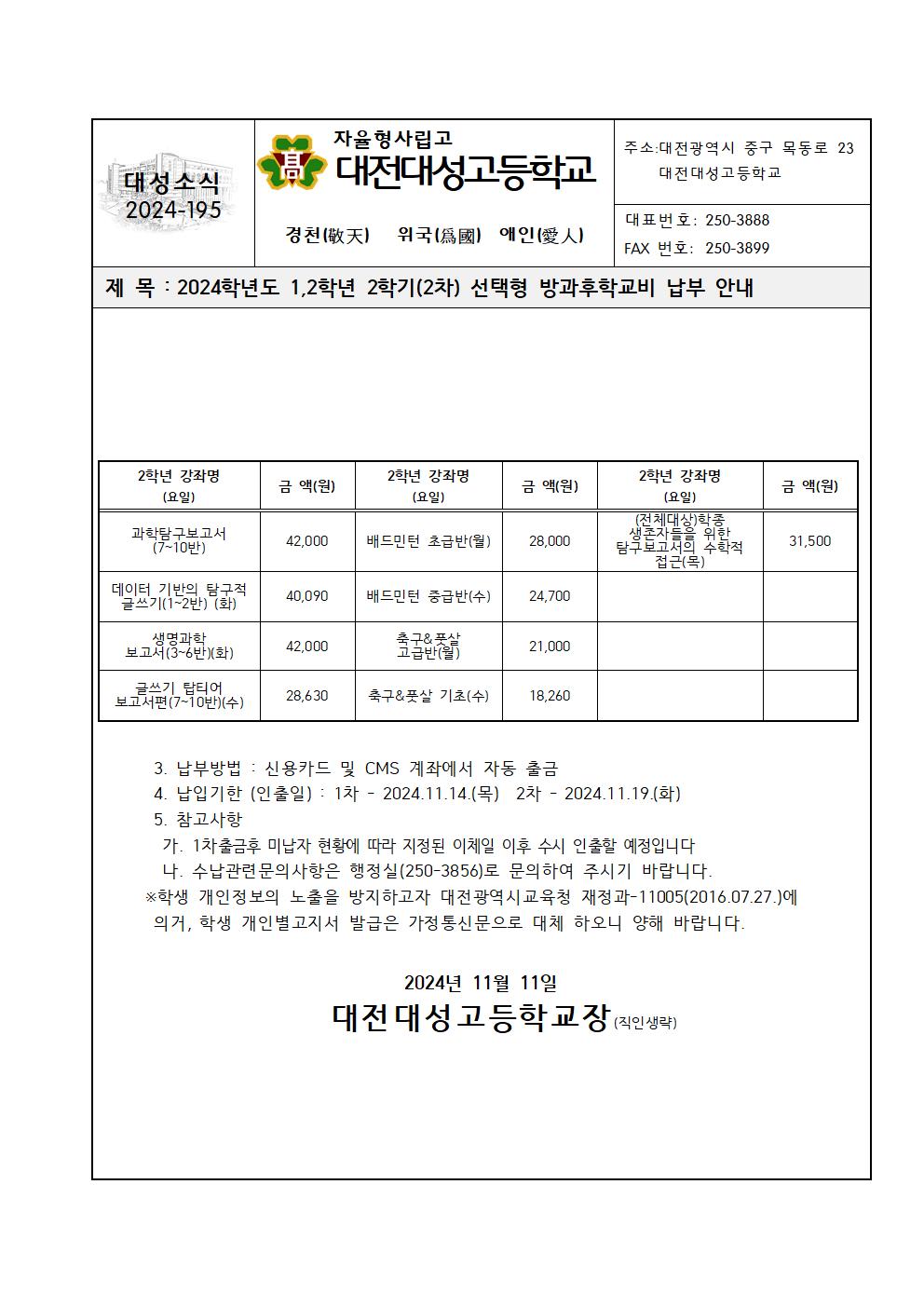 2024Çг⵵ 1,2Çгâ 2Çбâ(2Â÷) ¼±ÅÃÇü ¹æ°úÈÄÇб³ºñ ³³ºÎ ¾È³»