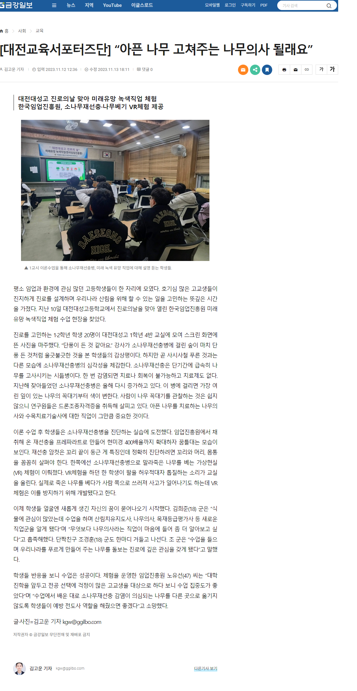 [´ëÀü±³À°¼­Æ÷ÅÍÁî´Ü] ¡°¾ÆÇ ³ª¹« °íÃÄÁÖ´Â ³ª¹«ÀÇ»ç µÉ·¡¿ä¡±