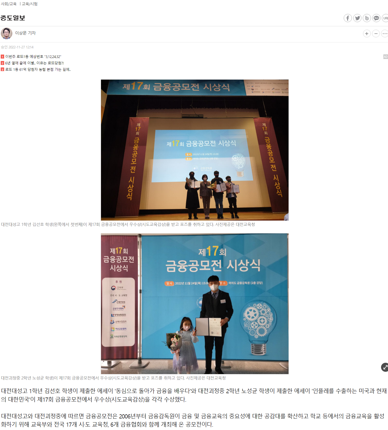 ´ëÀü´ë¼º°í, ´ëÀü±«Á¤Áß, Á¦17ȸ ±ÝÀ¶°ø¸ðÀü ¿ì¼ö»ó ¼ö»ó