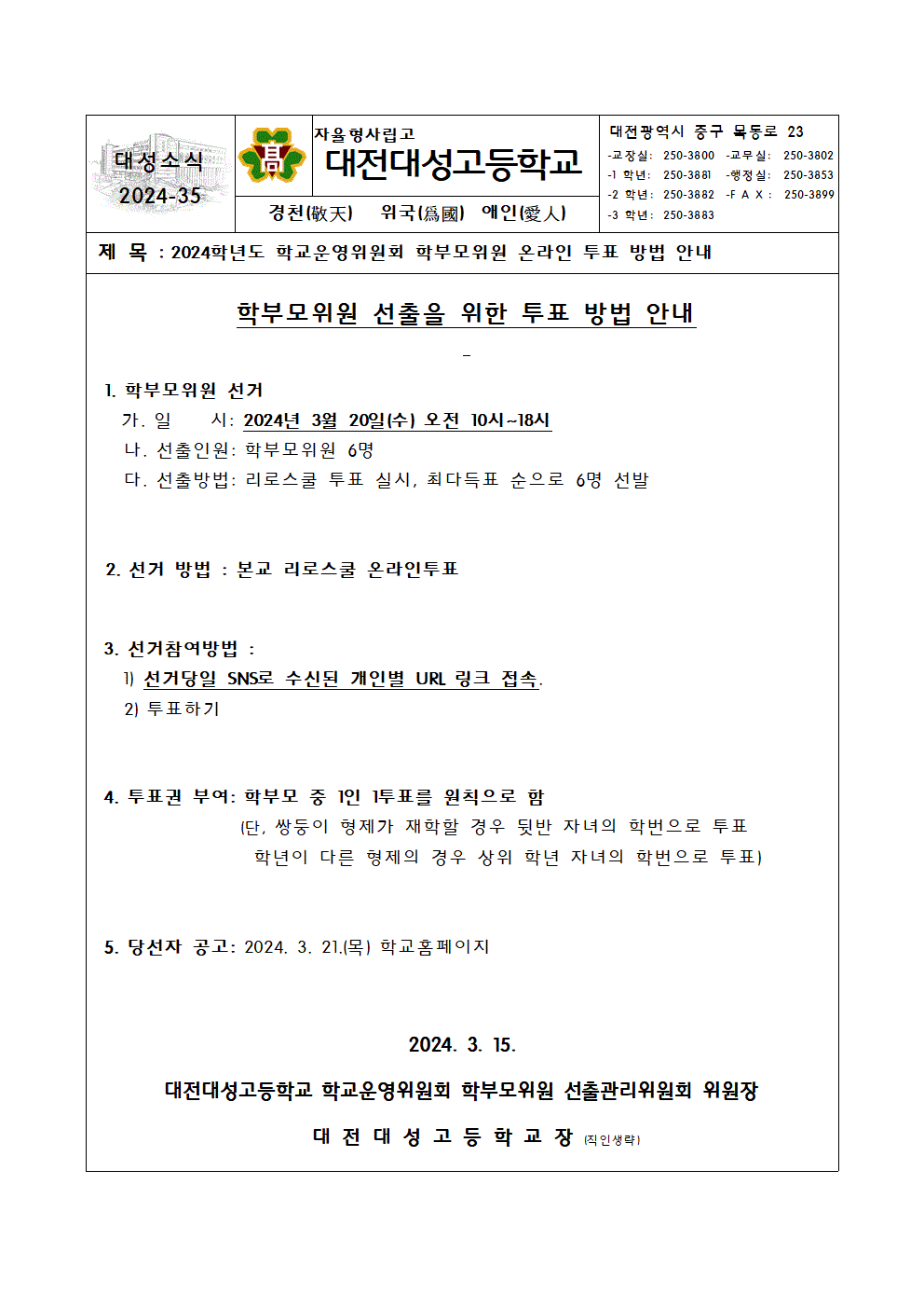 2024Çг⵵ Çб³¿î¿µÀ§¿øÈ¸ ÇкθðÀ§¿ø ¼±ÃâÀ» À§ÇÑ ÅõÇ¥ ¹æ¹ý ¾È³» °¡Á¤Åë½Å¹®