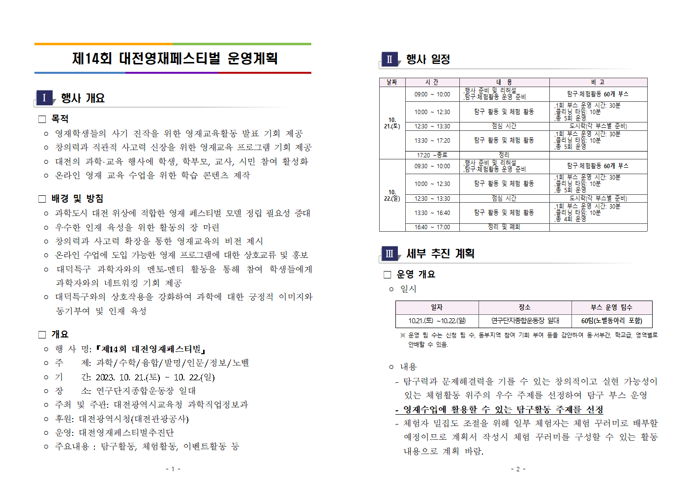 ´ëÀü±¤¿ª½Ã±³À°Ã» °úÇÐÁ÷¾÷Á¤º¸°ú_2023³â Á¦14ȸ ´ëÀü¿µÀçÆä½ºÆ¼¹ú ¿î¿µ °èȹ.hwp ´ëÀü±¤¿ª½Ã±³À°Ã» °úÇÐÁ÷¾÷Á¤º¸°ú_2023³â Á¦14ȸ ´ëÀü¿µÀçÆä½ºÆ¼¹ú ¿î¿µ °èȹ.hwp    ´Ù¿î·Îµå ¼ö : [ 70 ]