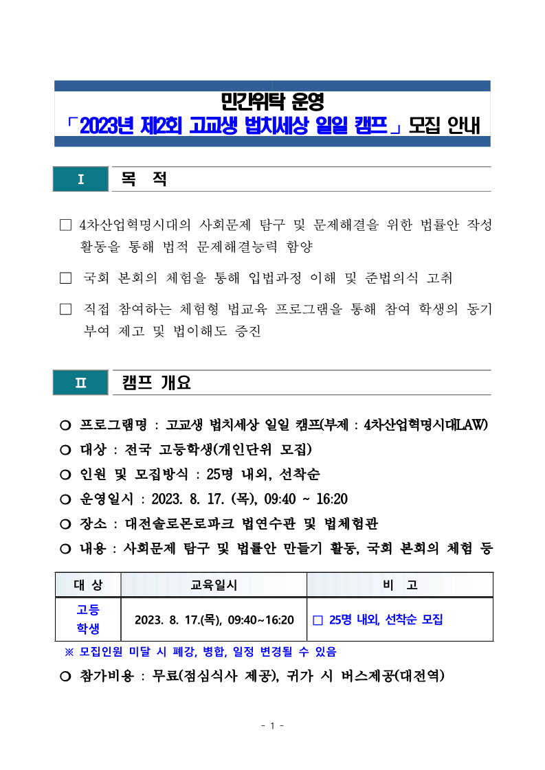 2023³â Á¦2ȸ °í±³»ý ¹ýÄ¡¼¼»ó ÀÏÀÏ Ä·ÇÁ