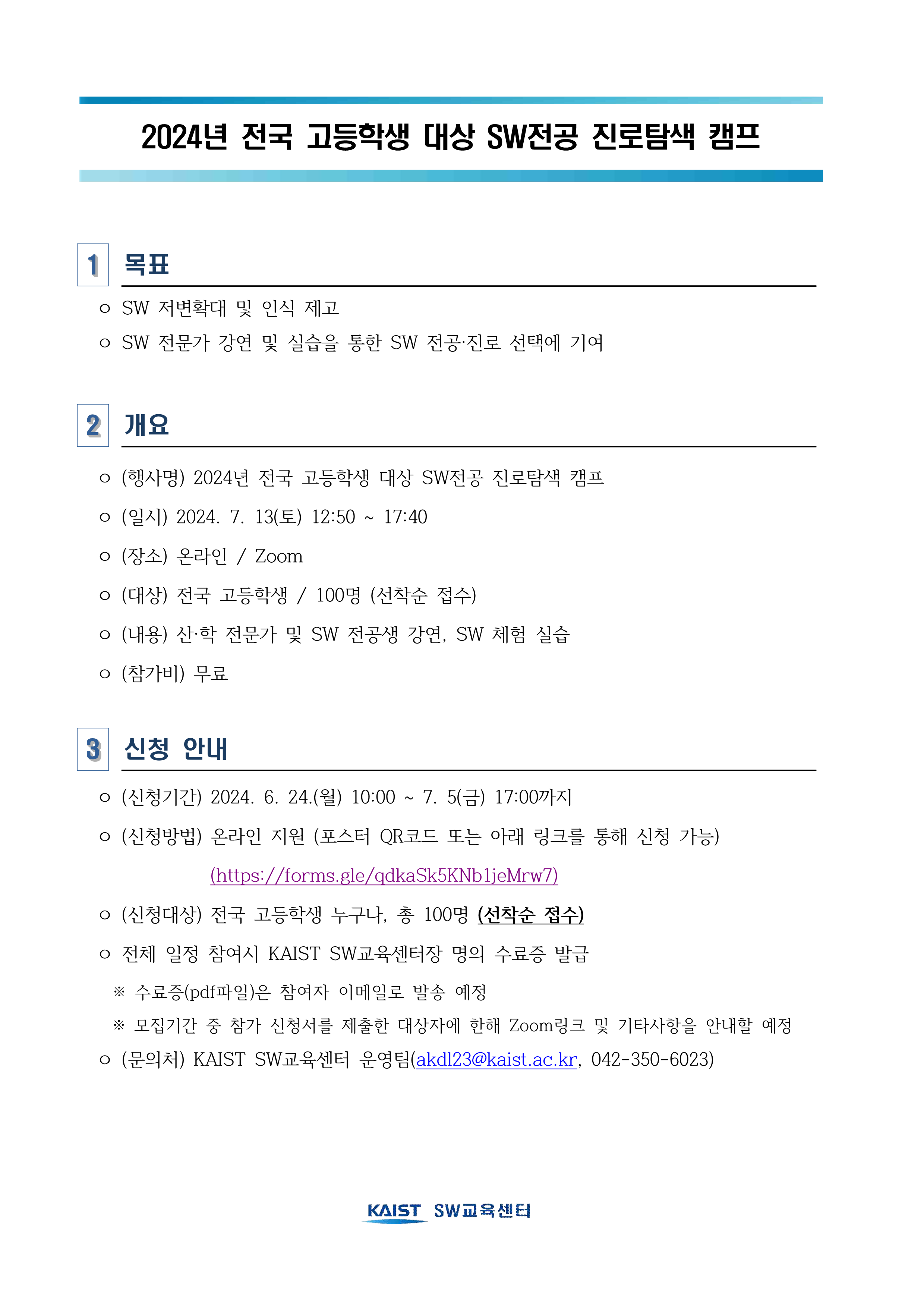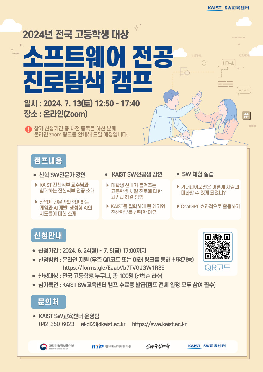 KAIST ÁÖ°ü 2024³â Àü±¹ °íµîÇлý ´ë»ó SWÀü°ø Áø·ÎŽ»ö Ä·ÇÁ