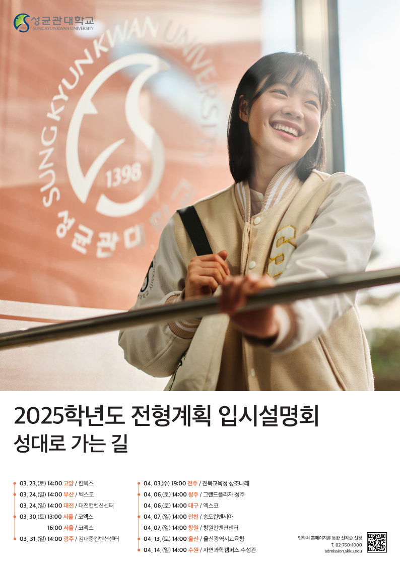 | 4. 14.(ÀÏ) 14:00 | ¼ö¿ø | ¼º±Õ°ü´ëÇб³ ÀÚ¿¬°úÇÐÄ·ÆÛ½º |