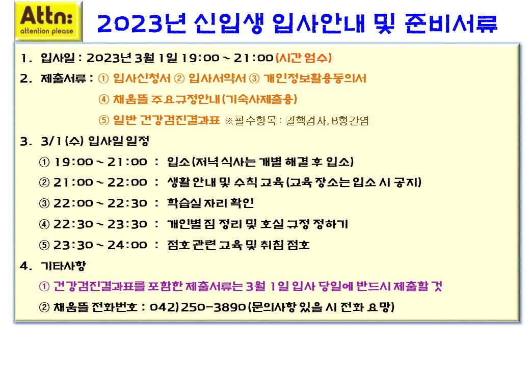 2023³â ½ÅÀÔ»ý ÀÔ»ç¾È³» ¹× Áغñ¼­·ù °ü·Ã °øÁö